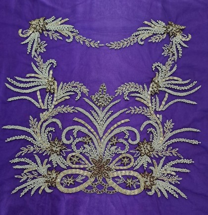 Panou bust față / spate mov cu mărgele argintii și cristale mov