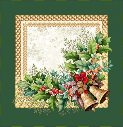 Față de masă din țesătură tip goblen cu Crăciunițe, vâsc și clopoței Crăciun mod. 1386 ve FN