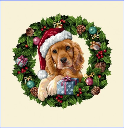 Față de pernă/napron crem Crăciun cu cățel mod. 480