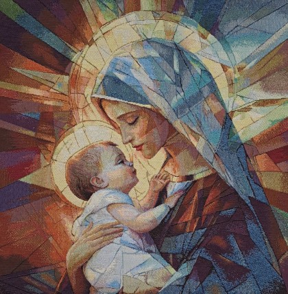 Față de pernă/napron cu Fecioara MAria și pruncul mod. 6293