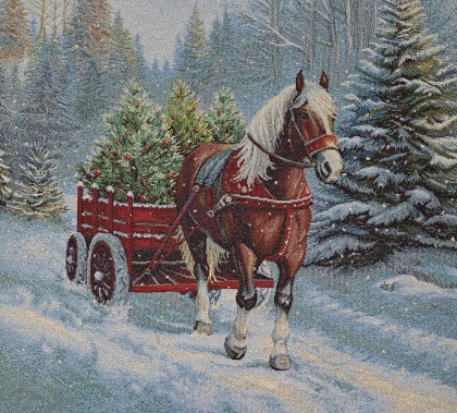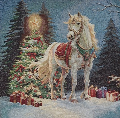 Față de pernă/napron Crăciun cu cal și peisaj de iarnă mod. 6319