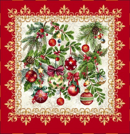 Față de masă goblen cu ramuri de brad și globuri Crăciun mod. 1335
