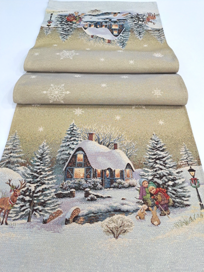 Față de masă goblen bej cu peisaj de iarnă mod. 1267