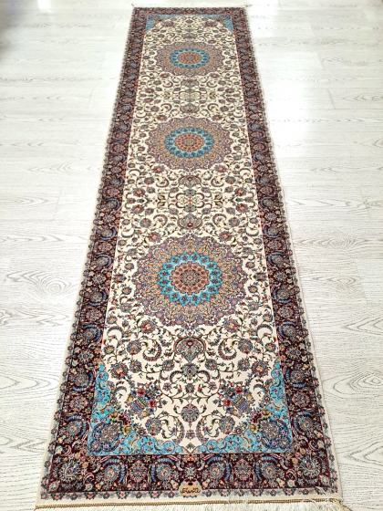 Covor din mătase ivoar cu model floral oriental colorat 80/300 cm