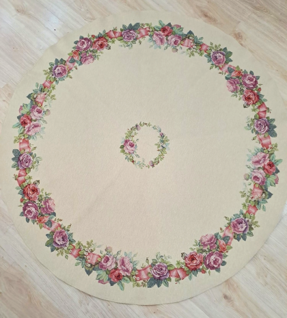 Față de masă goblen rotundă crem cu BAROC și trandafiri mod. 386NA dim. 140cm