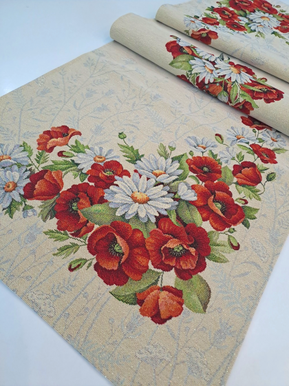 Față de masă crem goblen cu maci și margarete mod. 1350