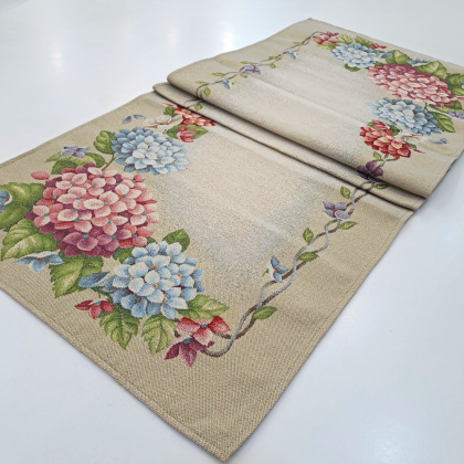 Față de masă traversă tip goblen cu hortensii mod.1227