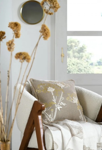 Pernă decorativă natur cu model floral alb cu auriu