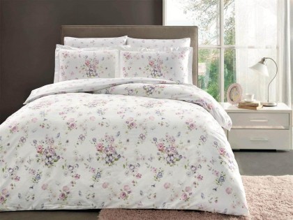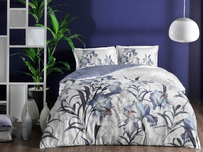 Lenjerie pat albă cu flori de Iris cu două fețe de plapumă