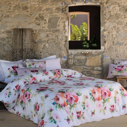 Lenjerie de pat matrimonial cu doua fețe pilote albă cu trandafiri