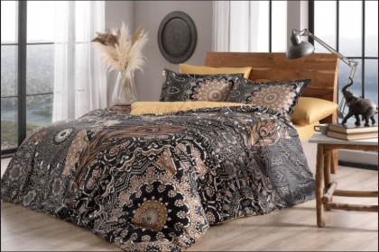 Lenjerie de pat CU DOUĂ FEȚE DE PLAPUMĂ crem cu model oriental gri cu mov