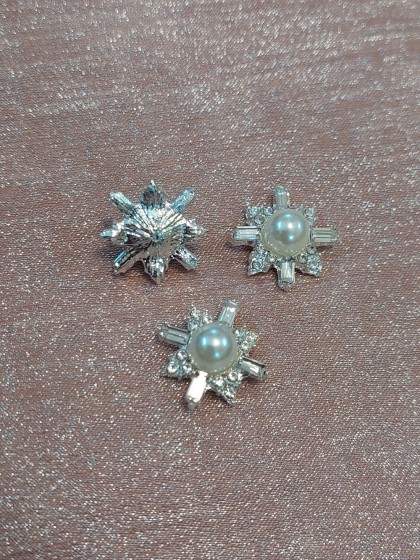 Accesoriu metalic decorativ argintiu cu perlă și cristale