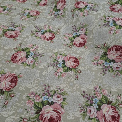 Draperie/tapițerie goblen la metraj crem cu flori roz și crem mod.1007