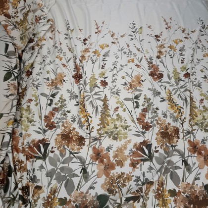 Draperie bej deschis texturata cu galben, roşu si bleumarin