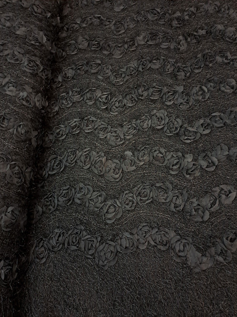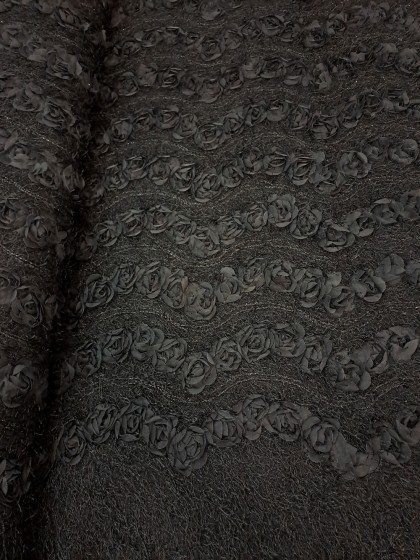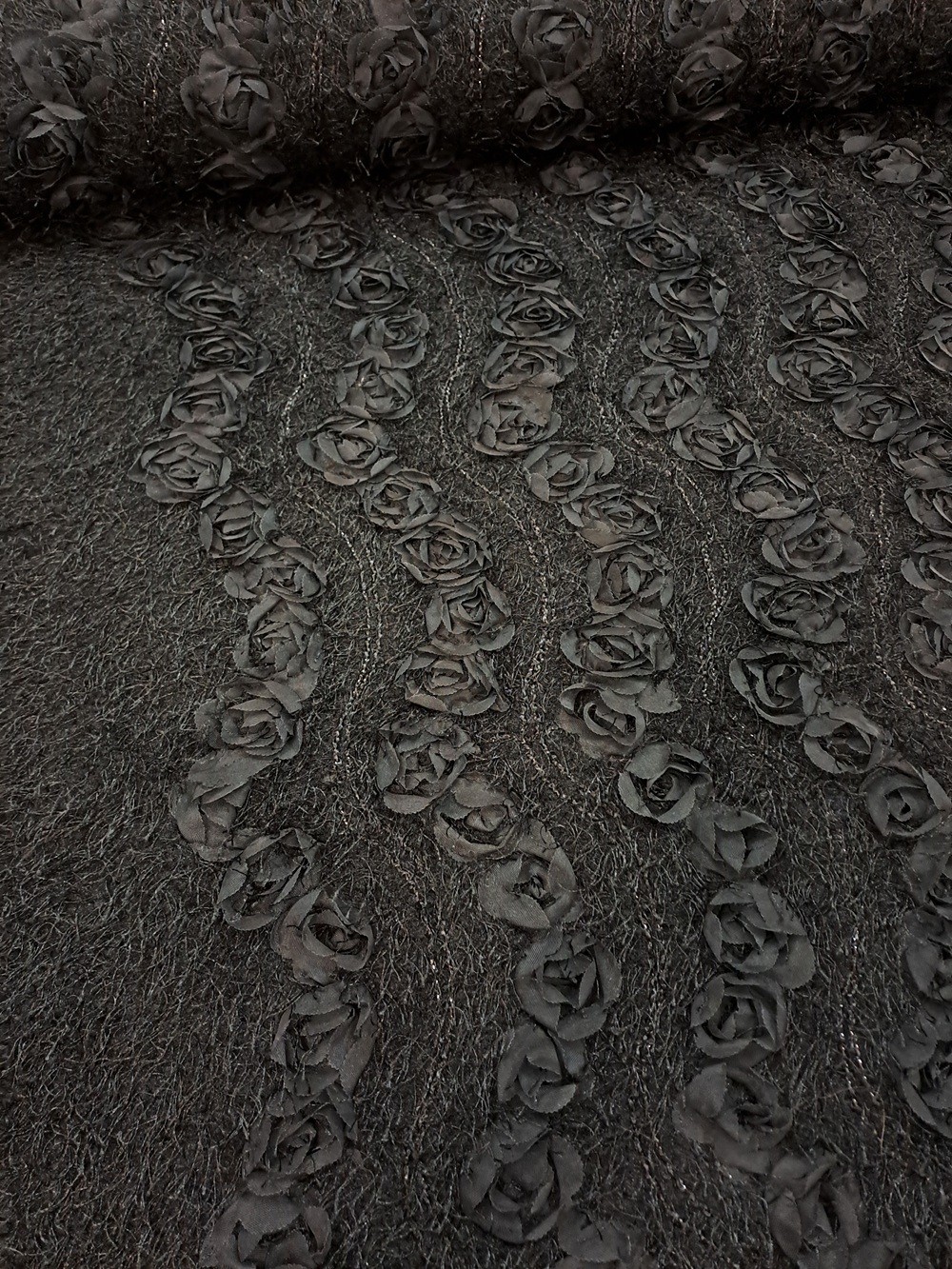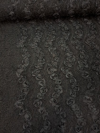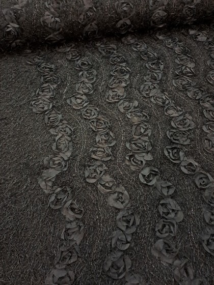 Blaniță cu ghirlande de trandafiri în 3D dispuse vertical pe lungimea materialului.