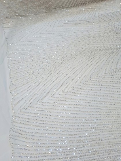 Este o broderie din paiete și mărgele pe suport de tull ivoar.