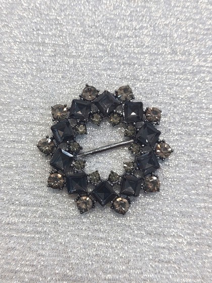 Este o cataramă metalică neagră cu cristale rotunde și pătrate.