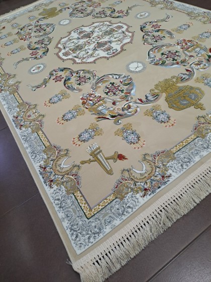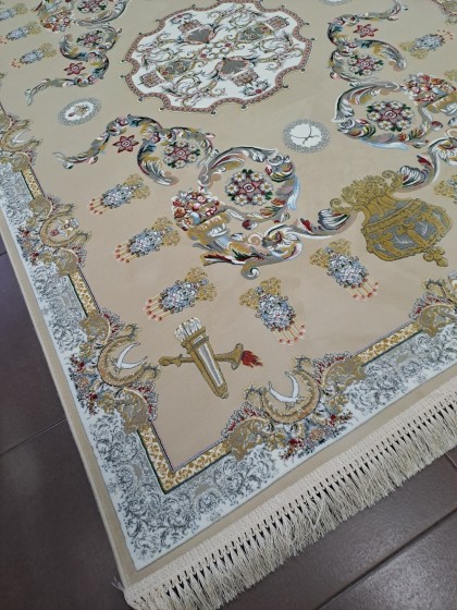 Covorul conține următoarele culori: bej, gri, muștar, bordo, frez, albastru deschis, ivoar.