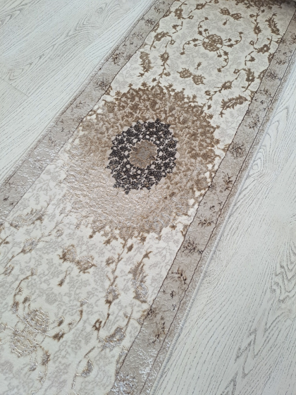 Covor clasic în stil baroc ivoar cu chenar multicolor. Țesut cu o densitate mare , nu permite pătrunderea prafului în covor, lucru ce-i asigură o întreținere ușoară și o rezistență îndelungată în timp.