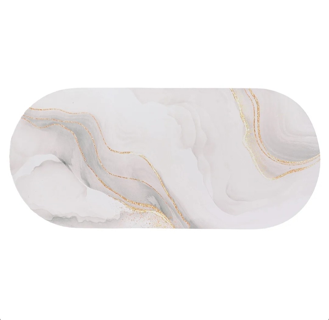 Este un covor pentru baie conceput pentru a fi folosit în fața căzii sau a cabinei de duș. Suprafața ajută la absorbția apei și protejarea pardoselii de umezeală. Pe dos este cauciucat.