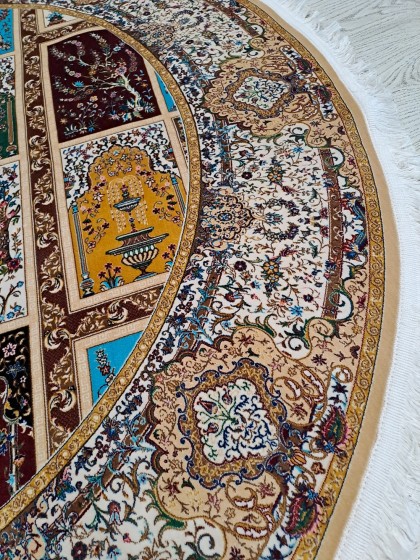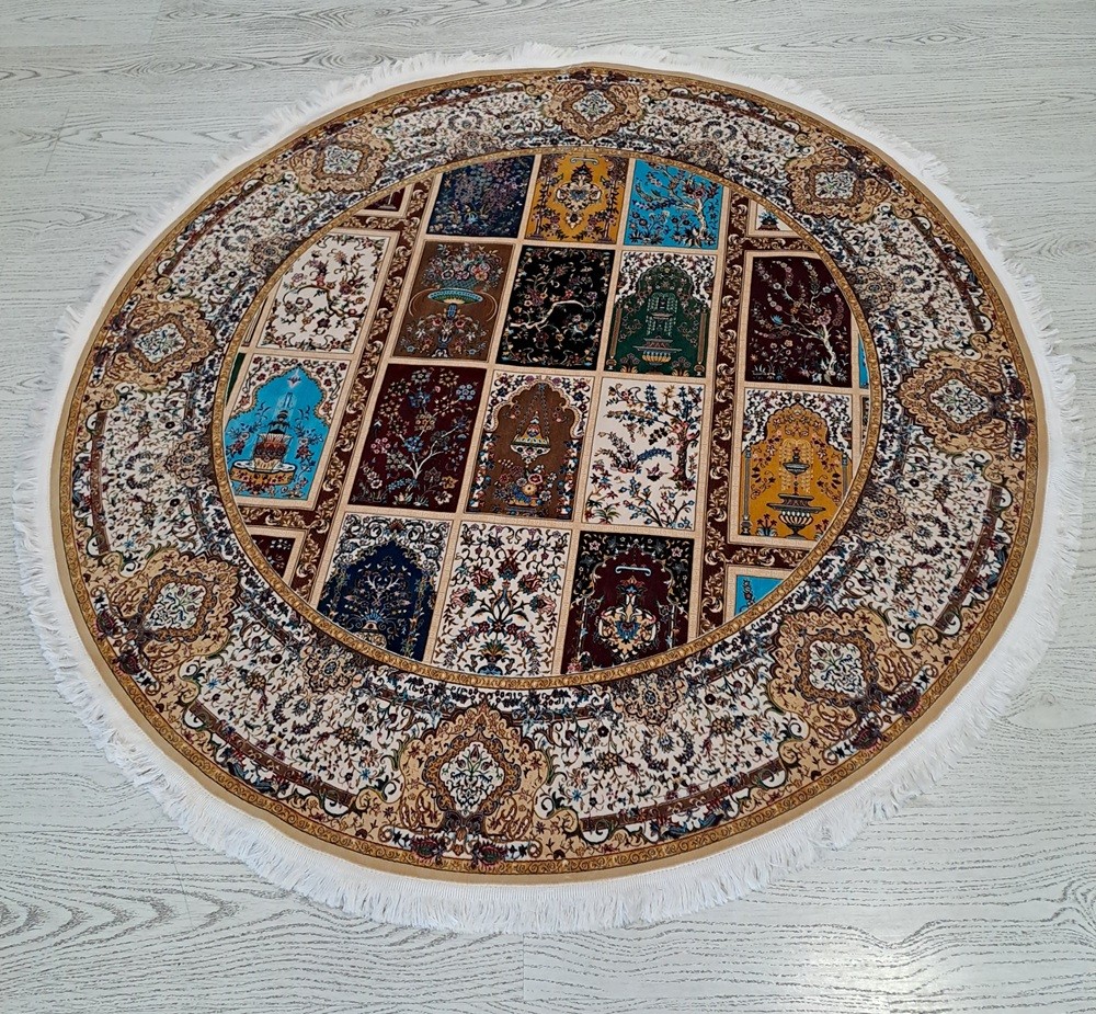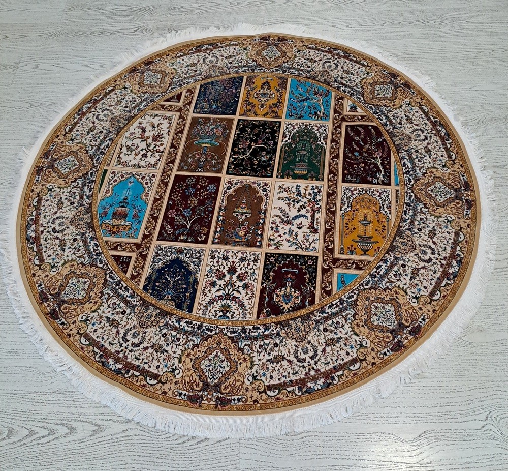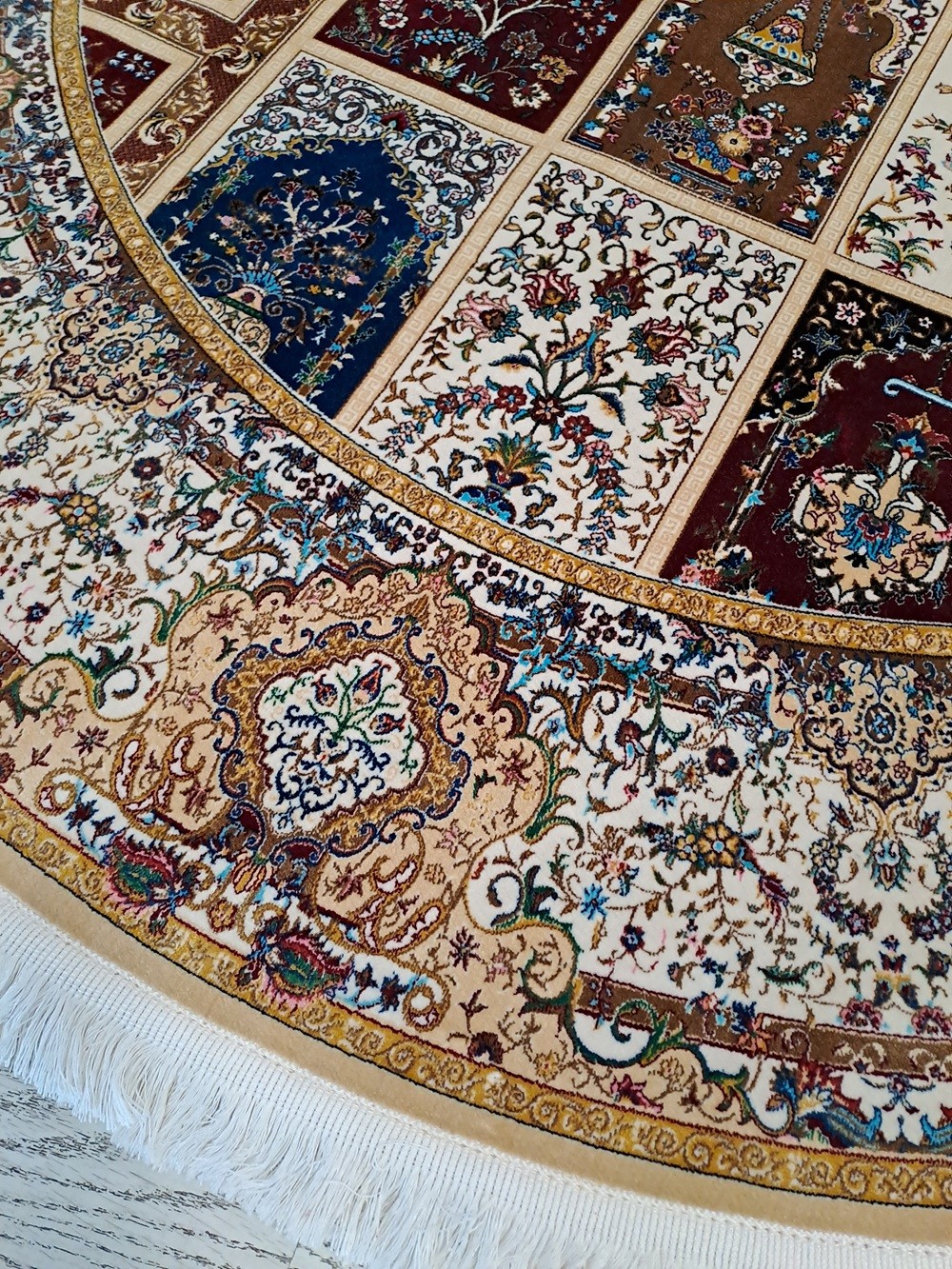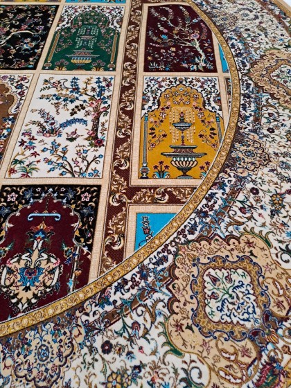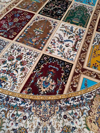 Este un covor cu model oriental dispus în carouri gen timbru.