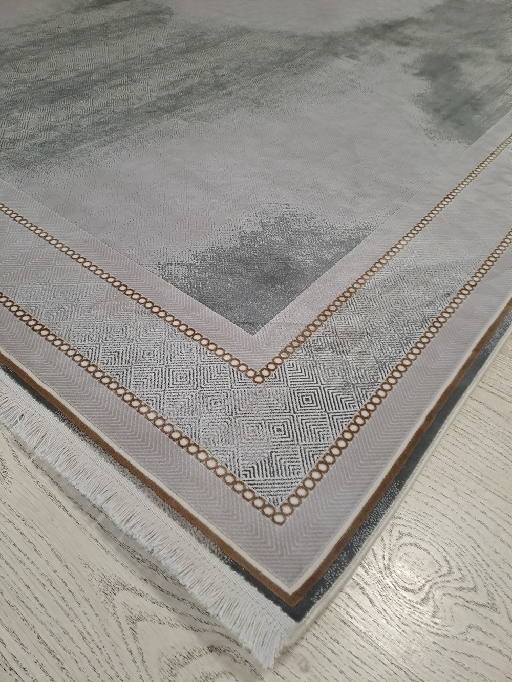 Dintr-o parte covorul este un gri mai intens, iar din direcția opusă este un gri-alb.