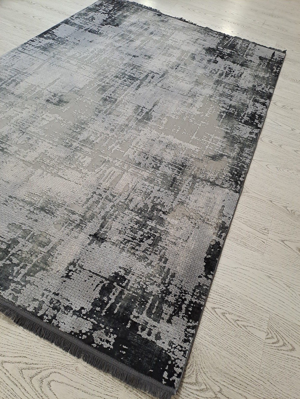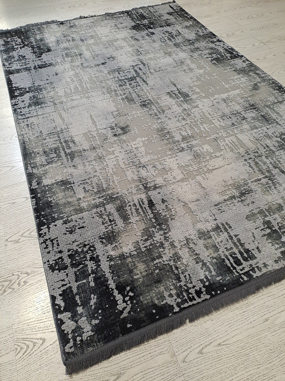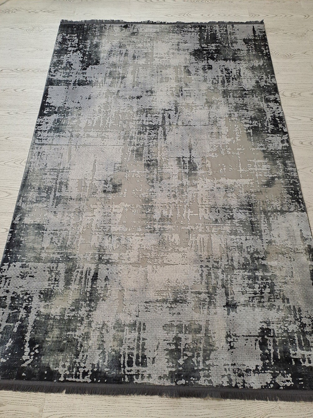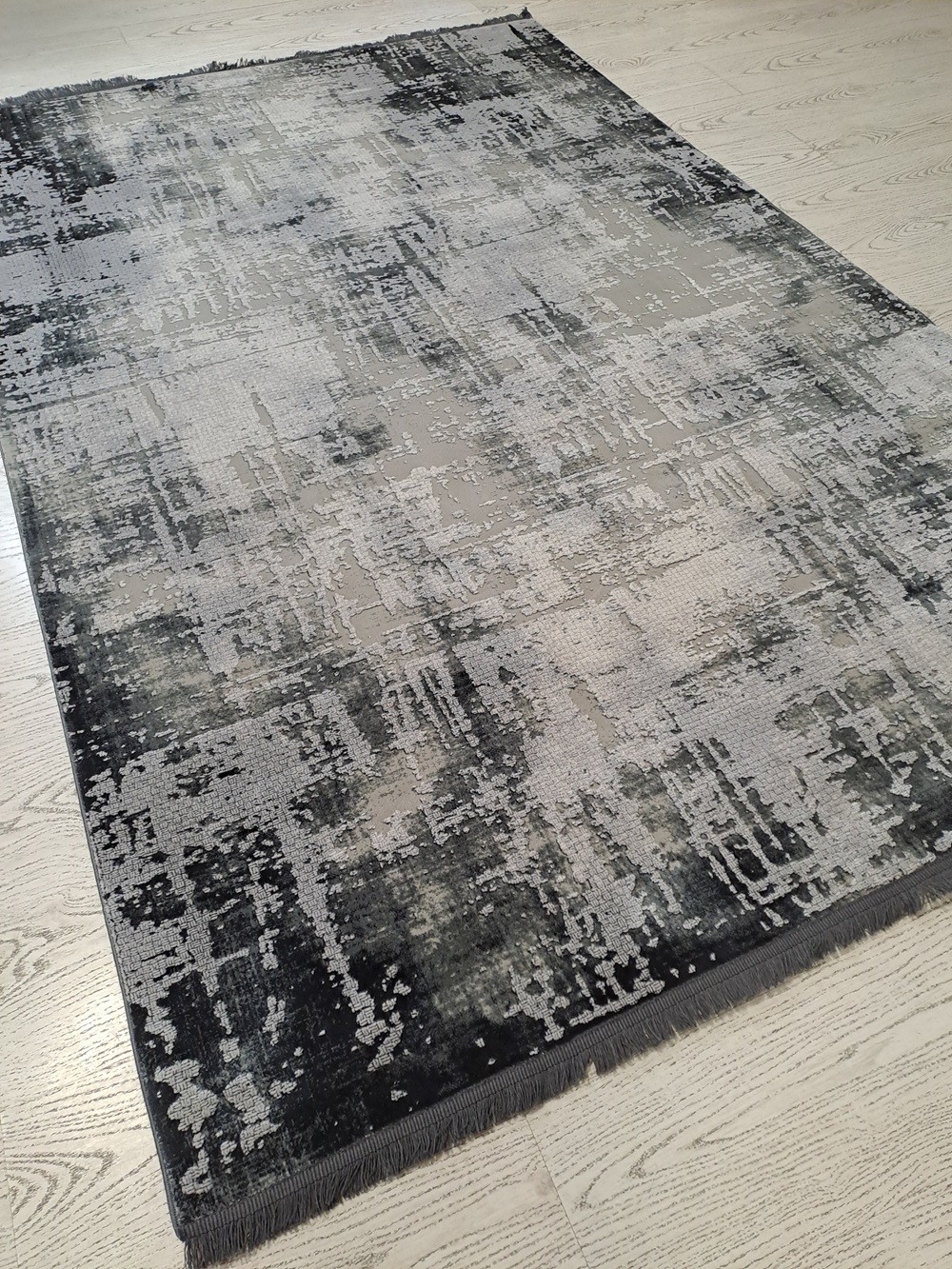 Este un covor modern gri în degrade.