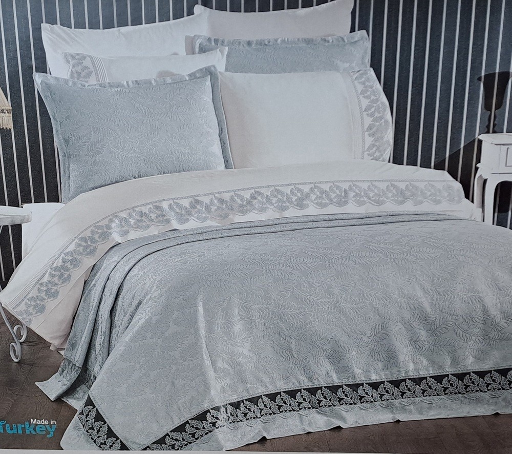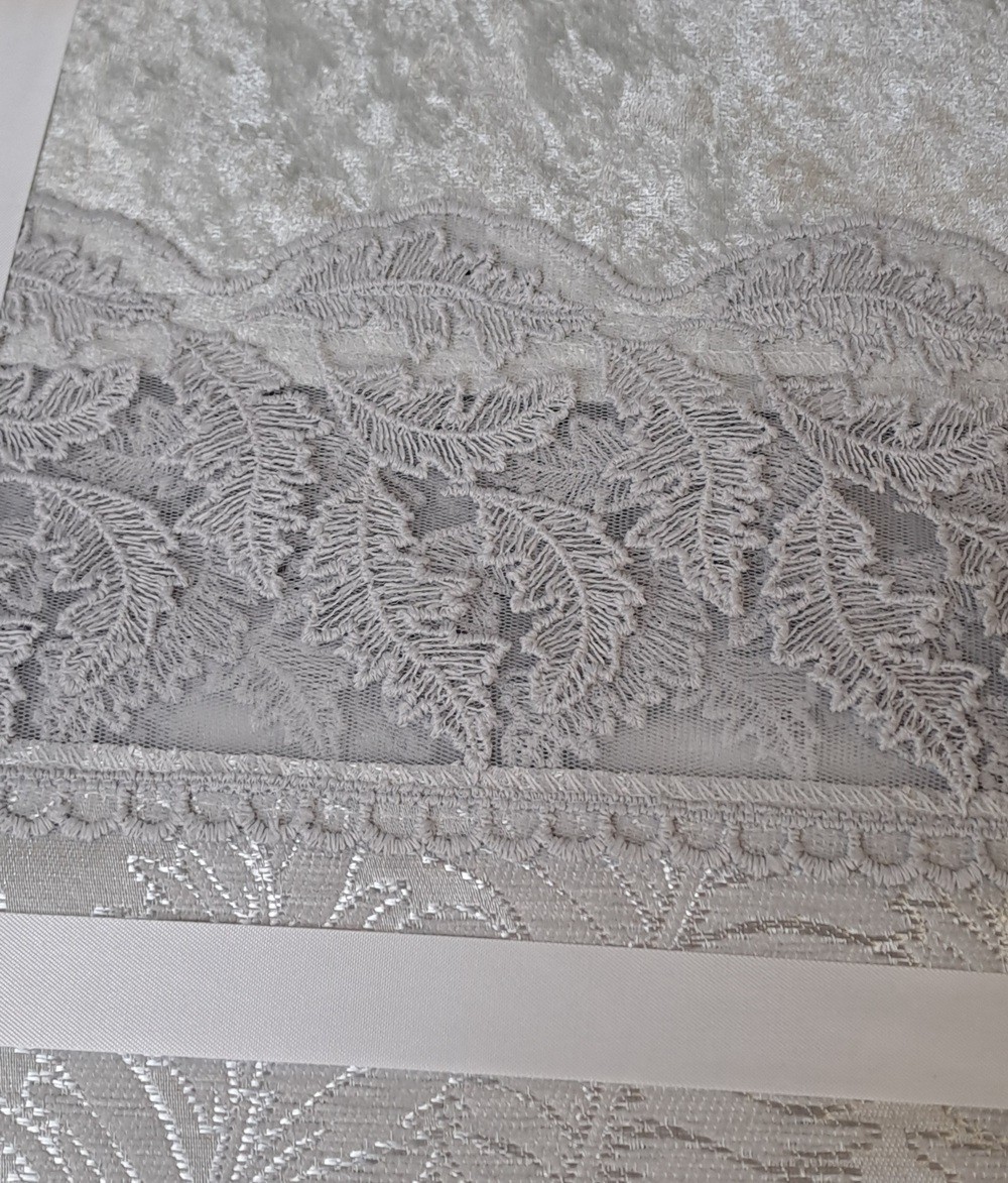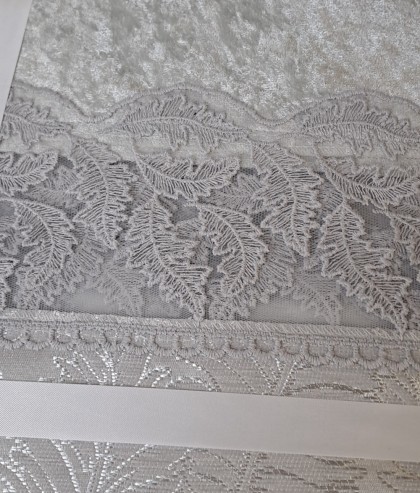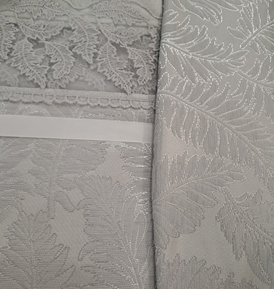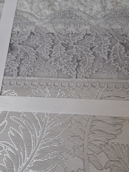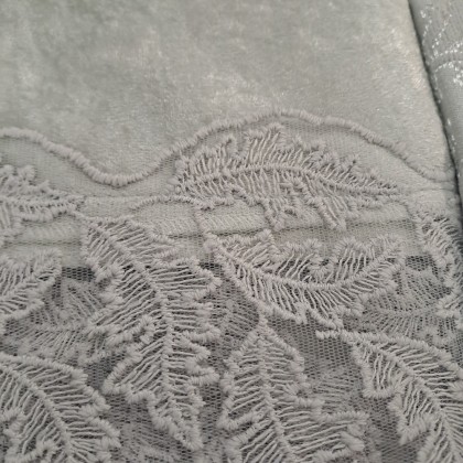 Cuvertură gri deschis cu frunze și aplicații de broderie
