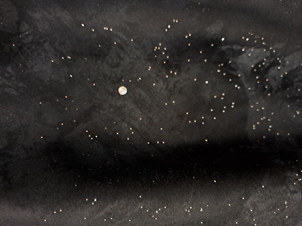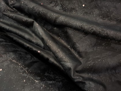 Este o draperie din catifea neagră cu aspect de prespălat cu paiete și sclipici argintiu.