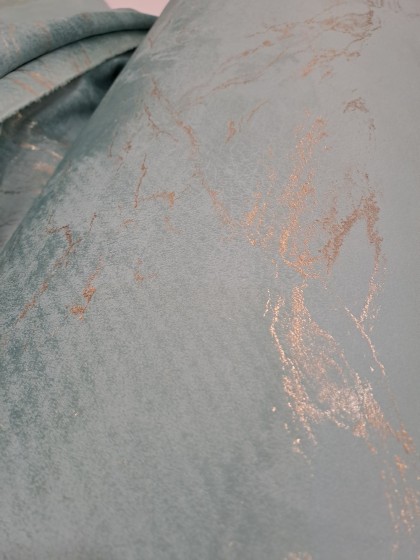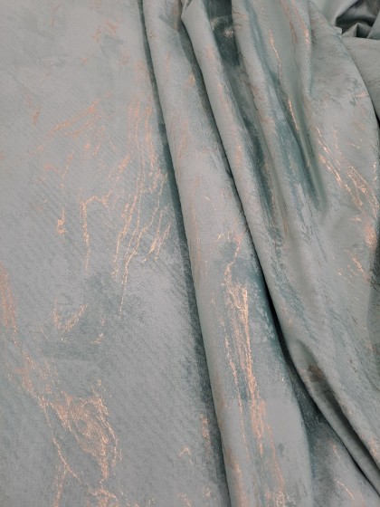 Este o draperie din catifea verde mentă cu patină aurie discretă.