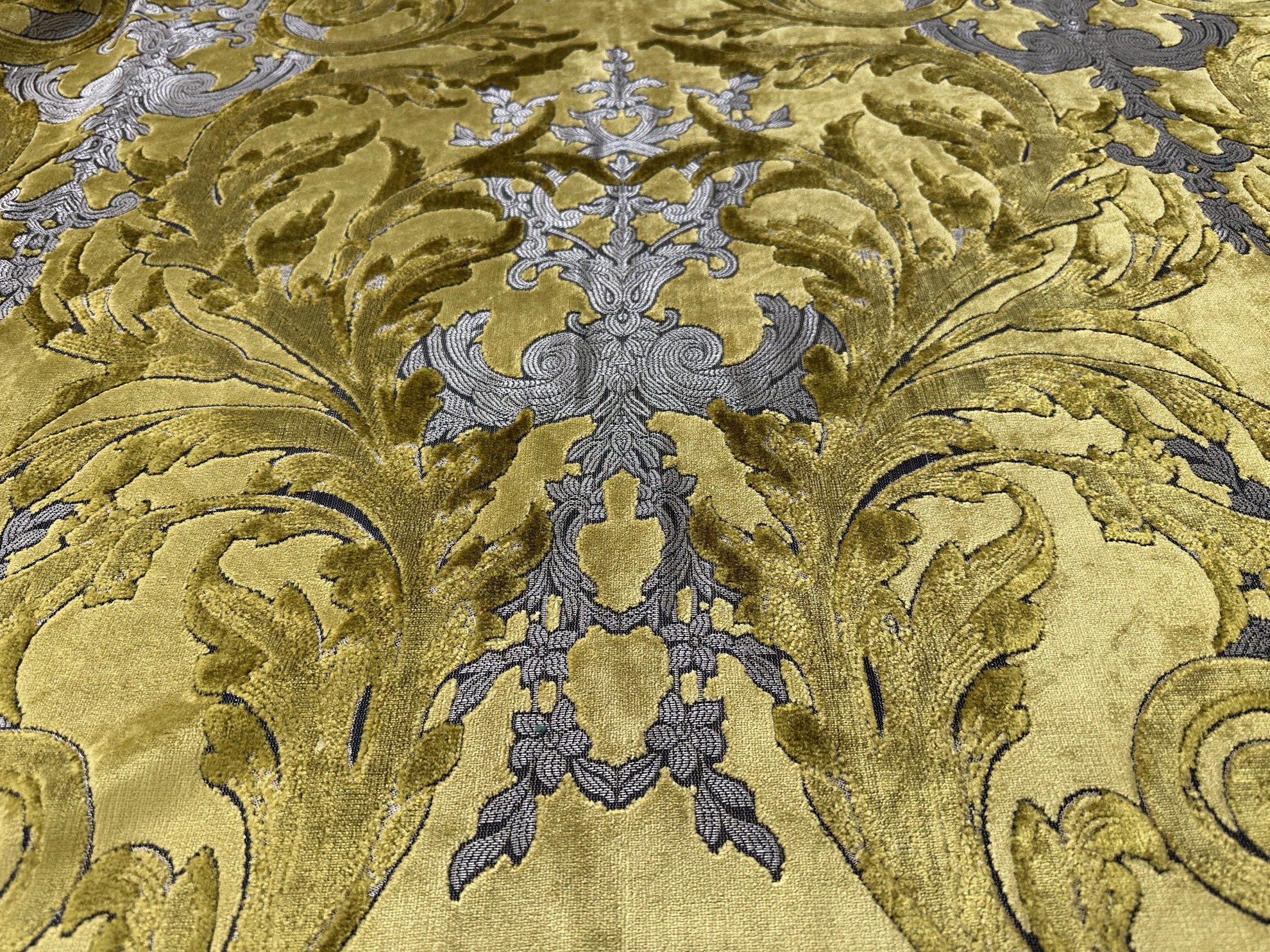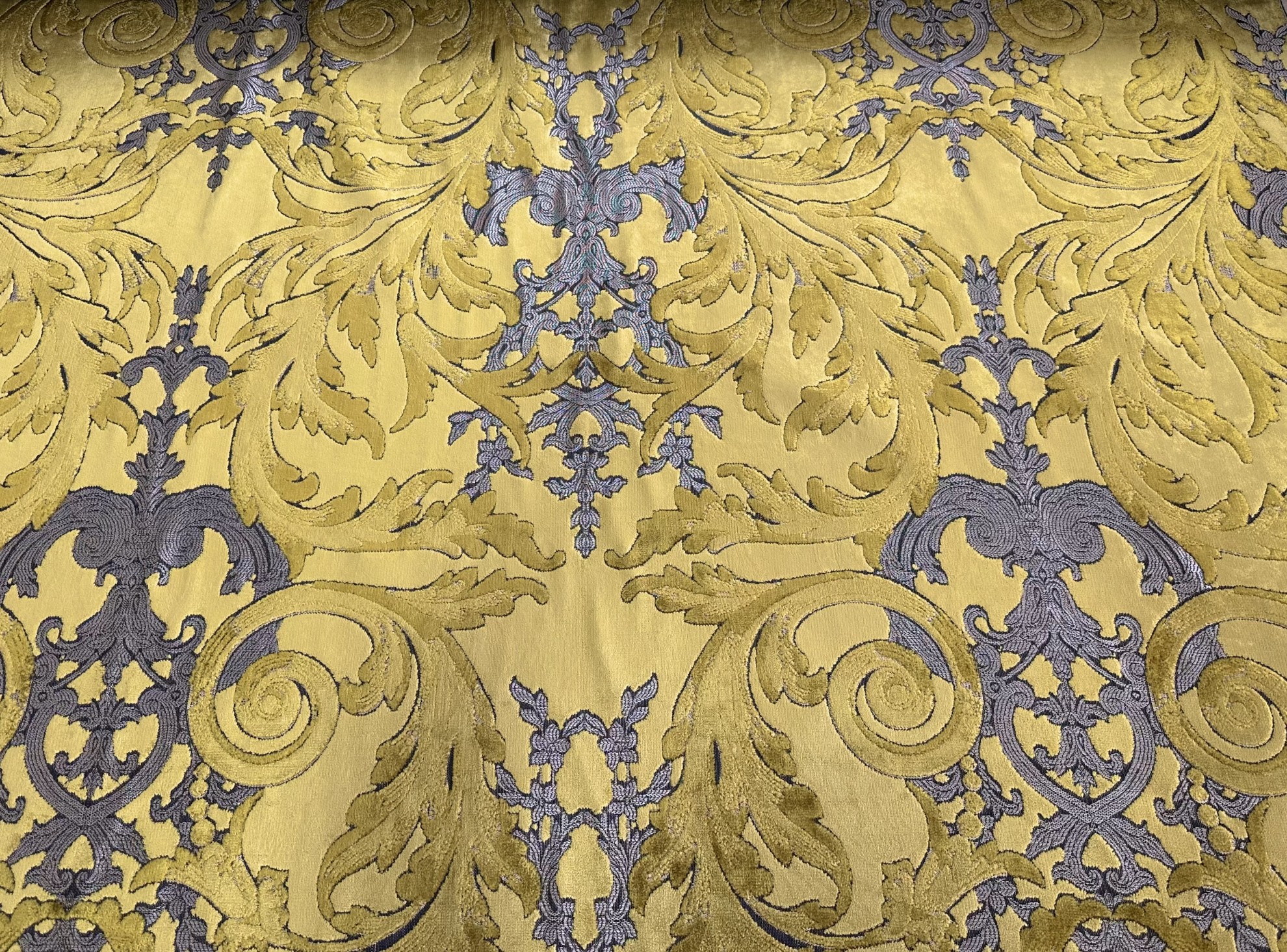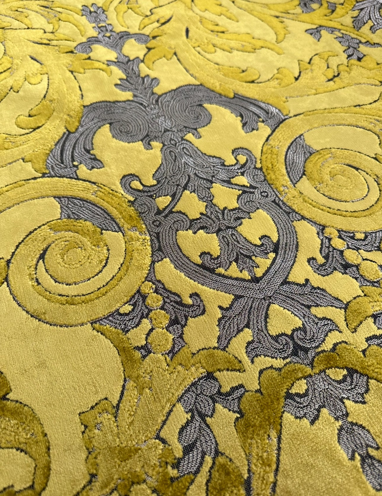 Este o țesătură deosebit de elegantă cu model 3 D din catifea cu goblen floral cu stilizări baroc. Conține și fire de lurex, lucru care dă un plus de eleganță discretă.