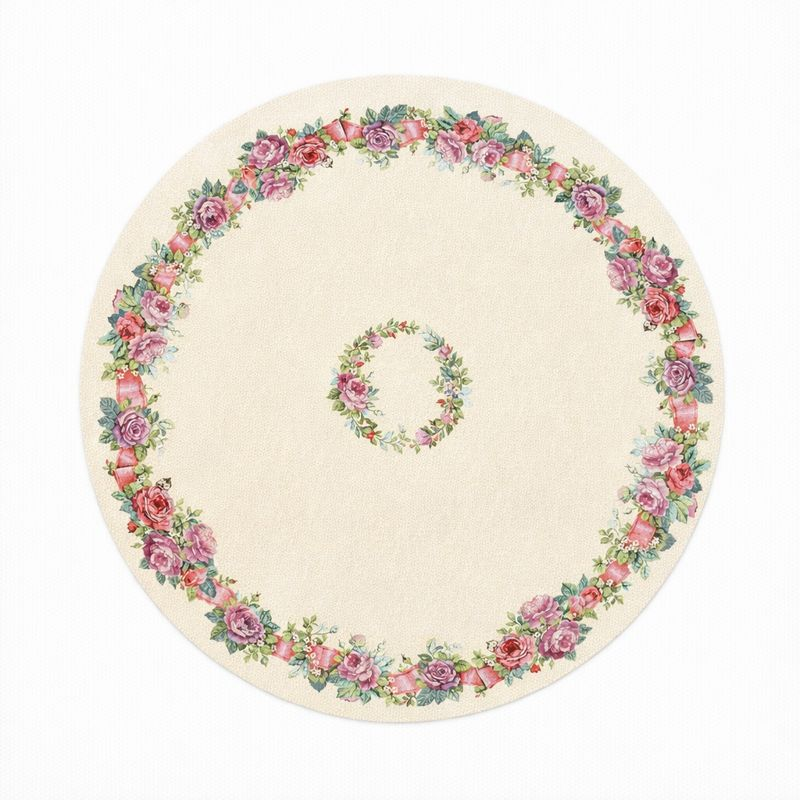 Față de masă din țesătură tip goblen crem cu trandafiri.