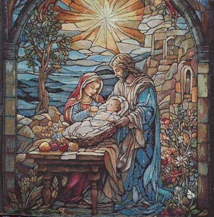 Este o față de pernă/ traversă cu Nașterea domnului.