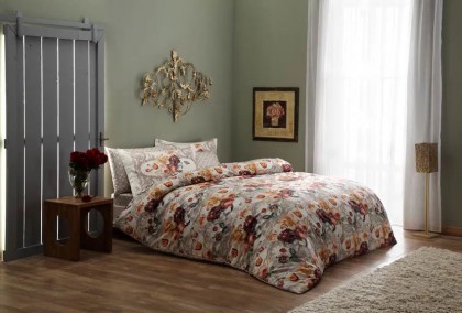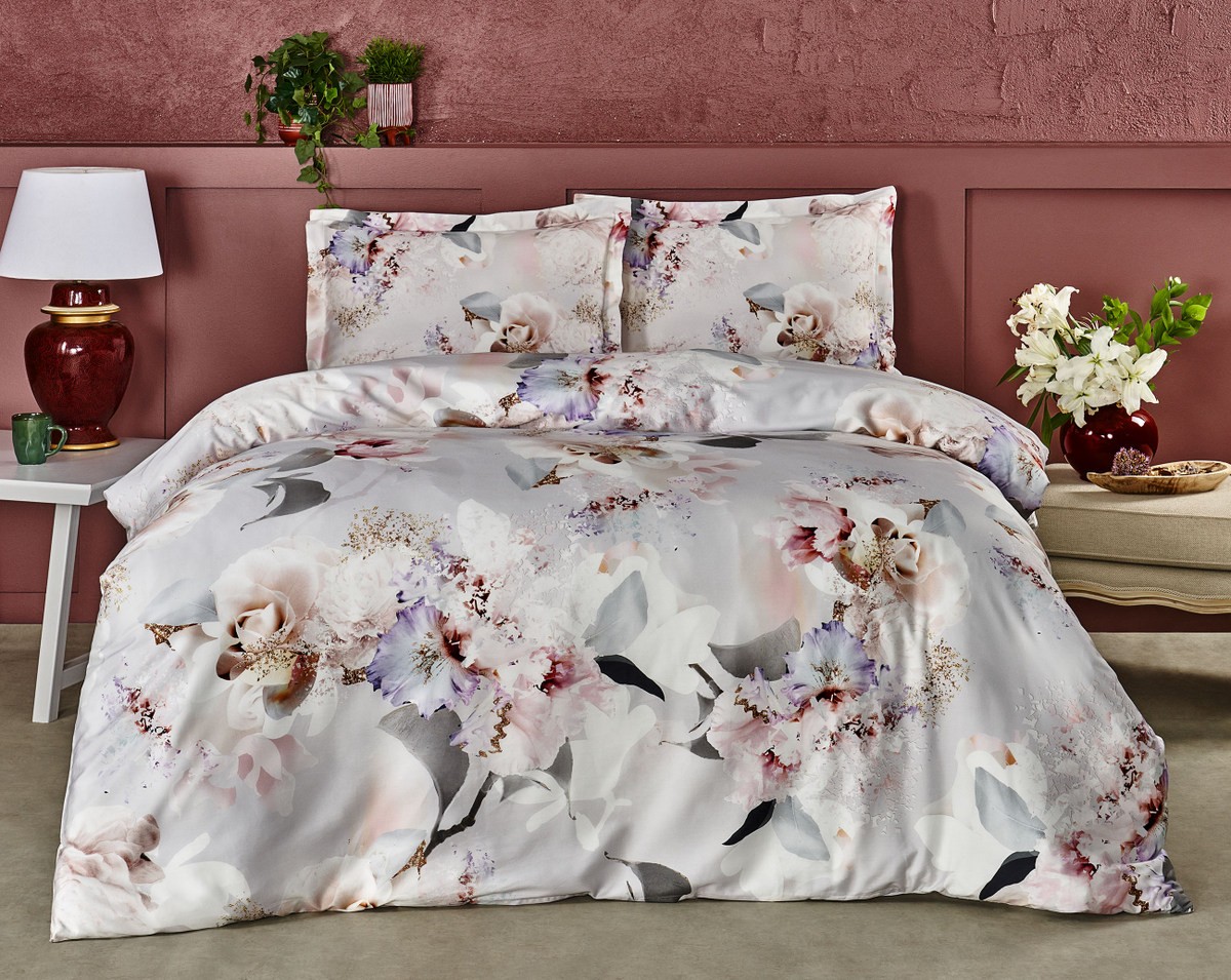 Lenjerie de pat albă cu model floral pastelat