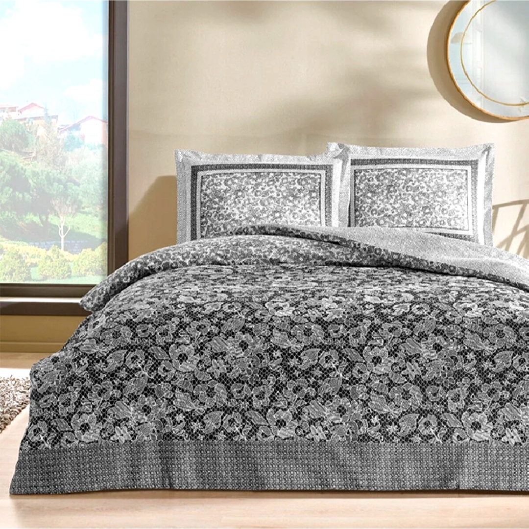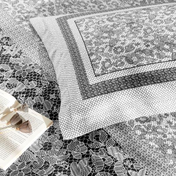 Lenjerie de pat bumbac satinat cu model floral alb/negru