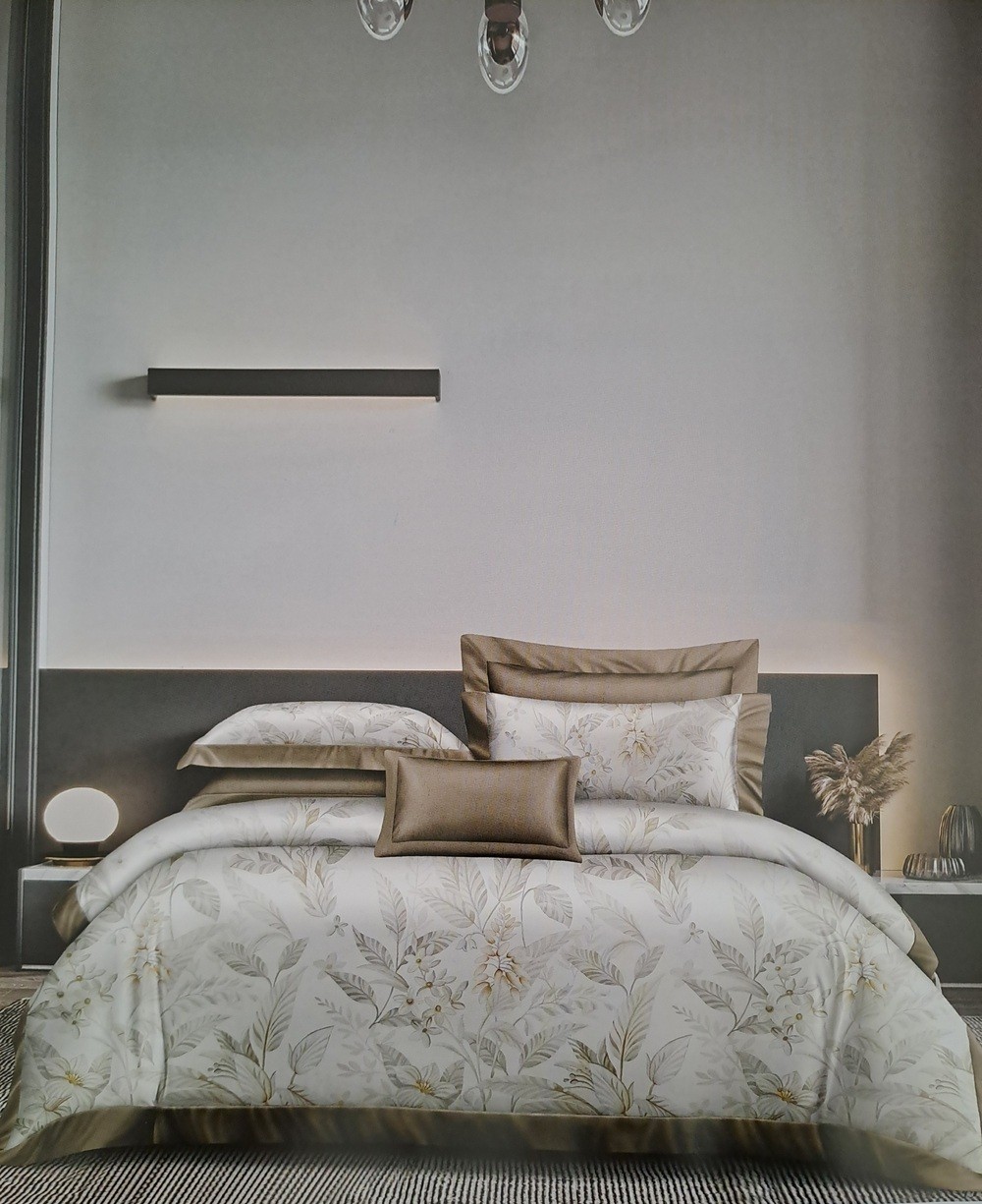 Lenjerie de pat din tencel albă cu flori și frunze