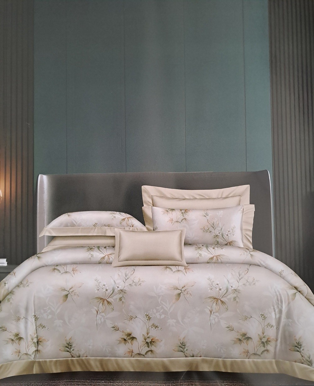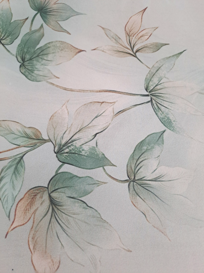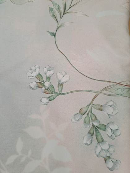 Lenjerie de pat din tencel verde mint cu flori albe și frunze