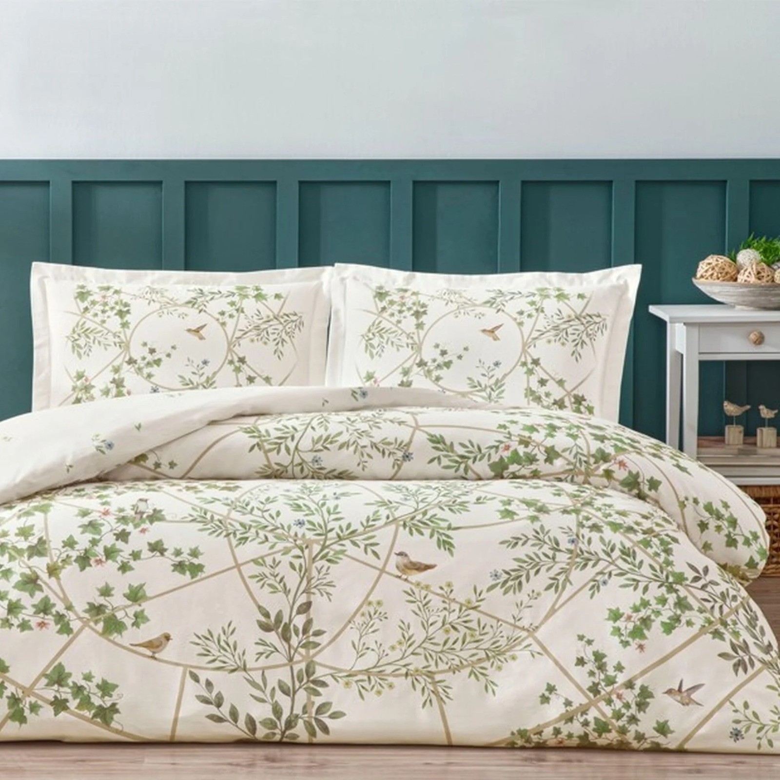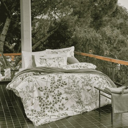 Lenjerie de pat matrimonial albă cu frunze