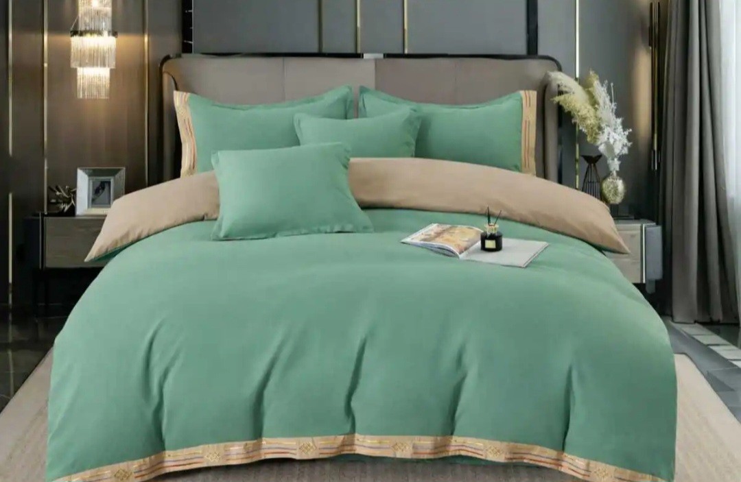 Lenjerie de pat verde mint cu chenare brodate