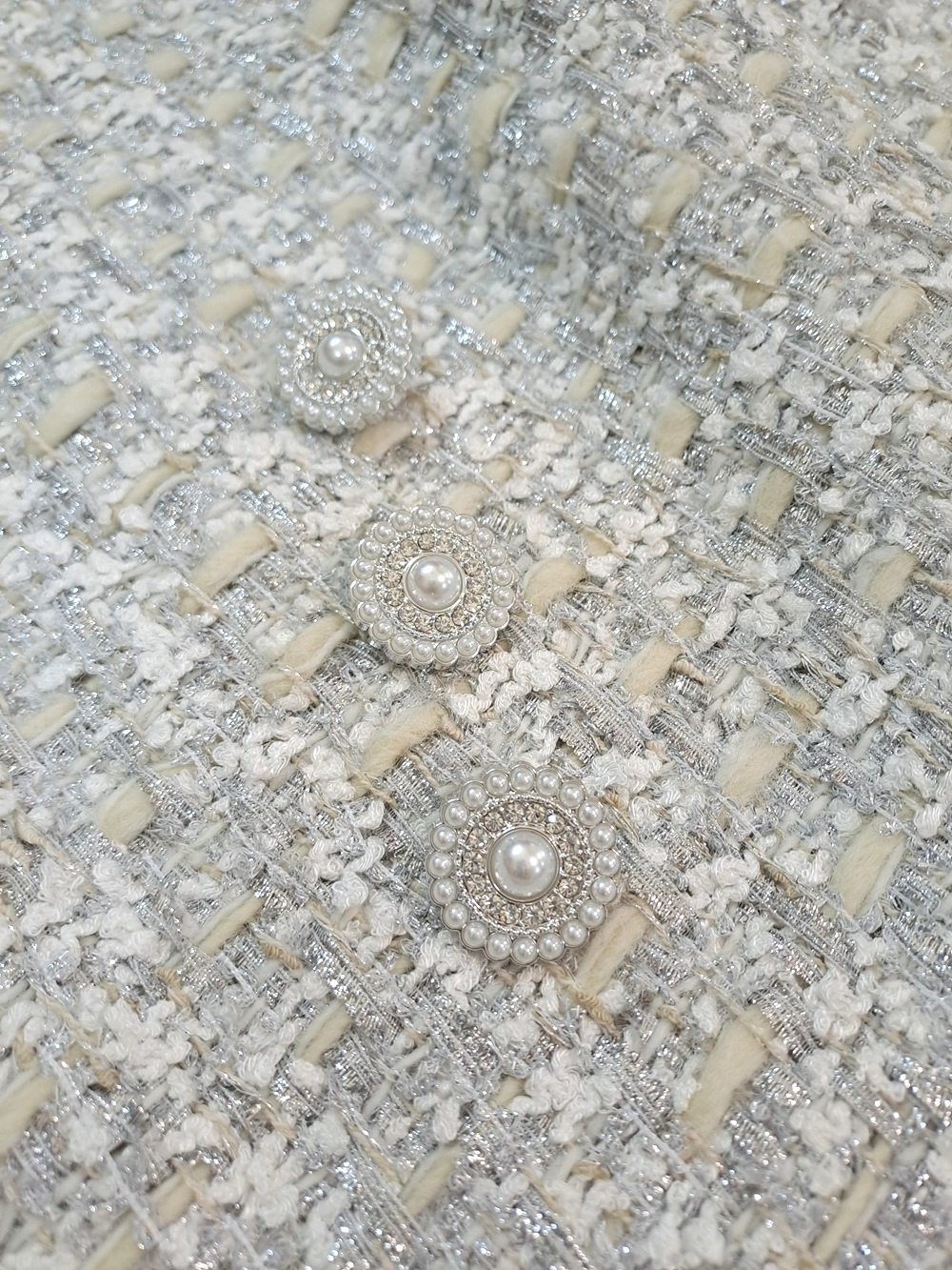 Sunt nasturii argintii cu perle și cristale. Au pe dos picioruș pentru fixarea prin coasere de haină.