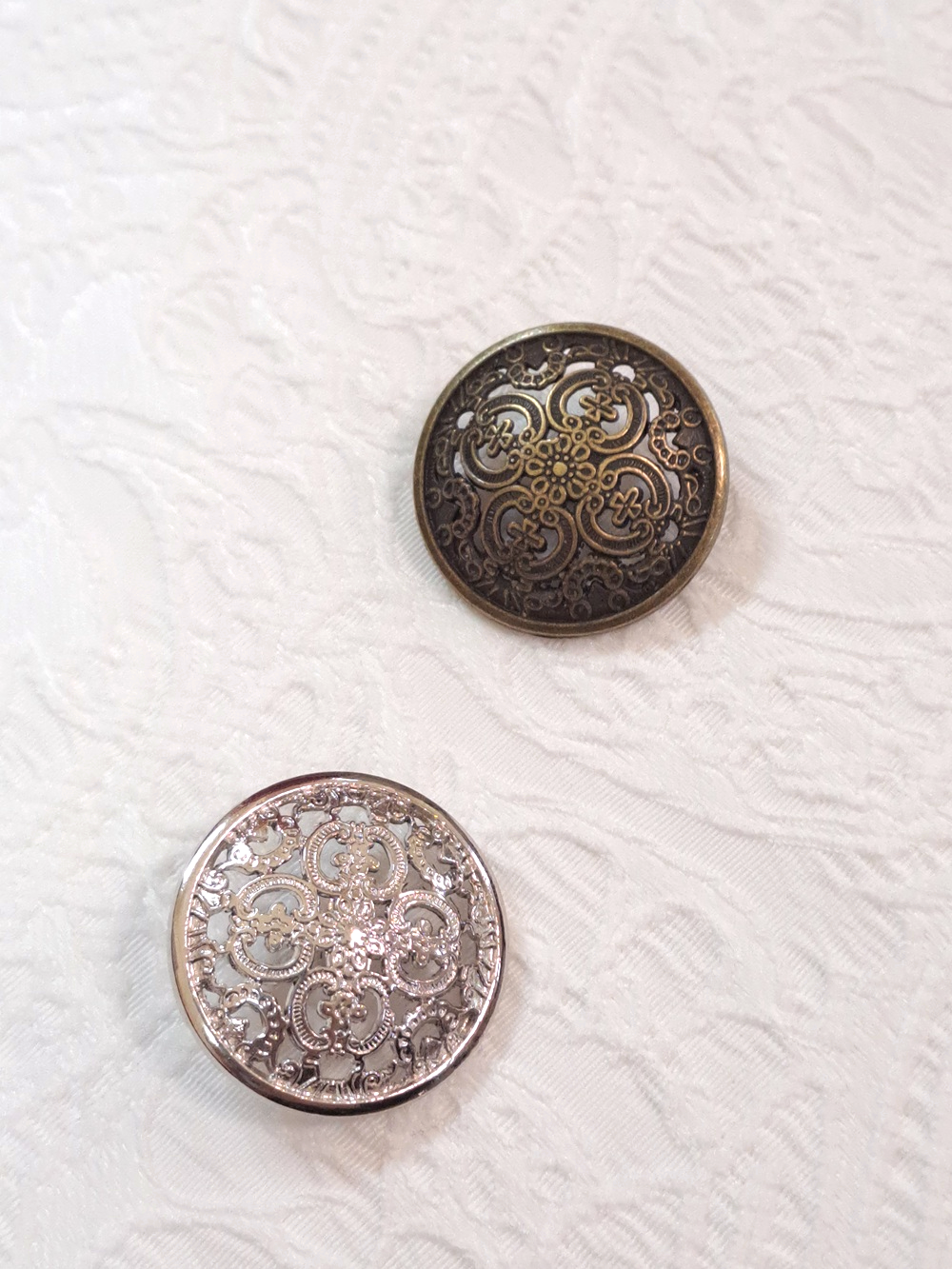 Sunt nasturi metalici cu model clasic, disponibili în două culori: aur antic și inox.