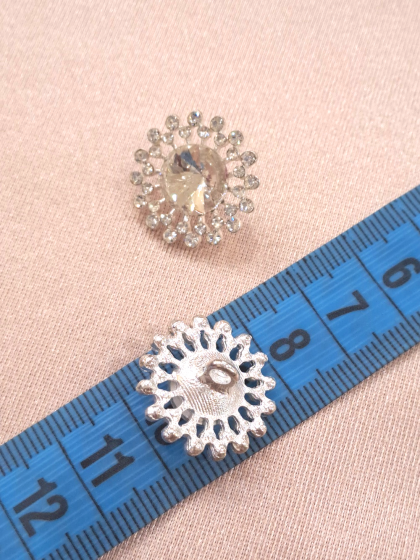 Nasturi metalici rotunzi cu cristale argintii. Un cristal mare este fixat în centru, iar pe margine ca niște raze este încercuit de două rânduri de cristale mici.