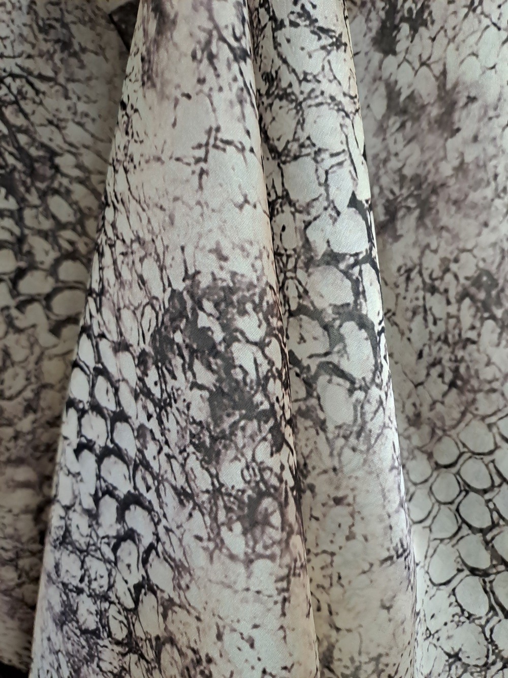 Organza cu imprimeu piele de crocodil este un material spectaculor, cu aspect exotic și modern. Textura vizuală inspirată din pielea de crocodil oferă ținutei un aer sofisticat și îndrăzneț.