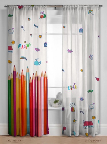 Este o perdea imitație de in ivoar cu casuțe, steluțe, etc. Se poate combina cu perdeaua cu bordură de creioane.