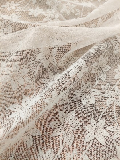Este o perdea de Pașcani crem cu model floral omogen pe toată suprafața.