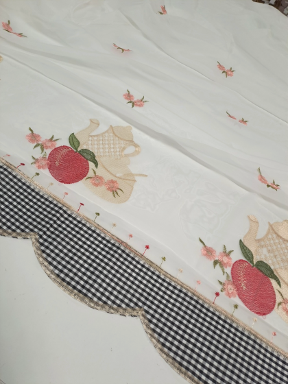 - Se calca la temperaturi de max 200°C grade/ trei buline/ nivel specific bumbacului, marcat pe fierul de calcat.