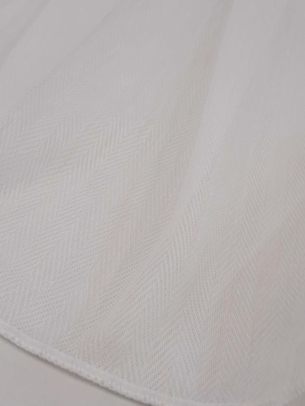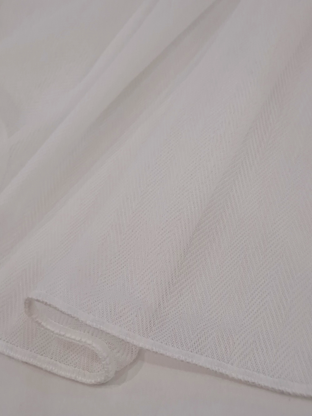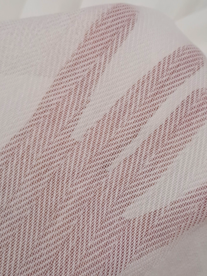 Este o perdea ivoar cu aspect bumbăcos cu model texturat în zig-zag.