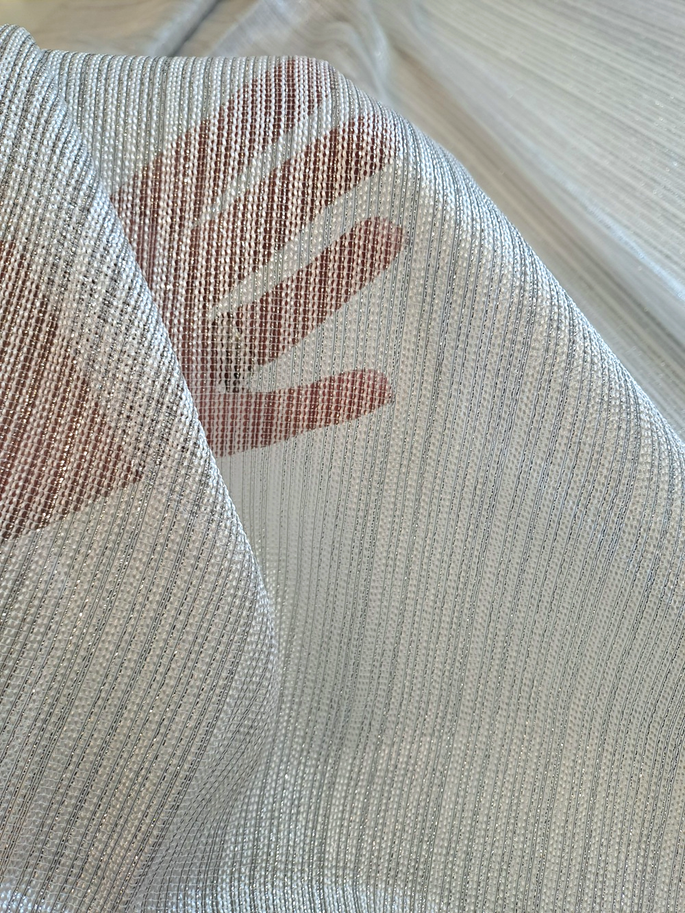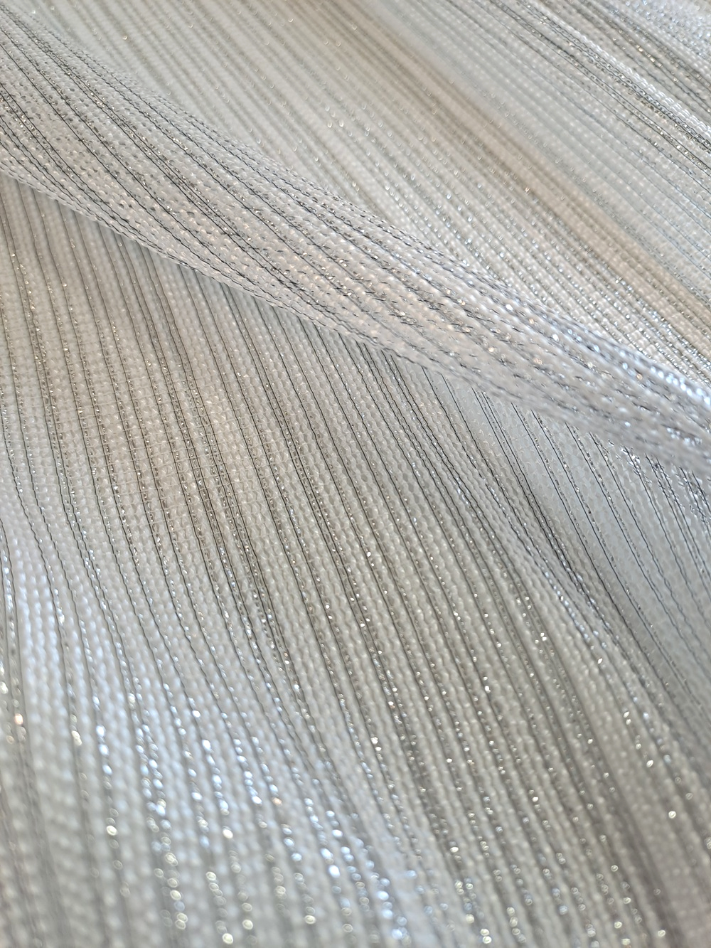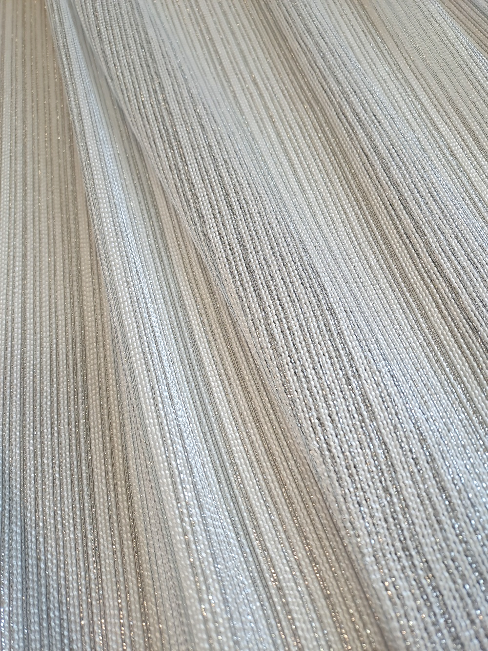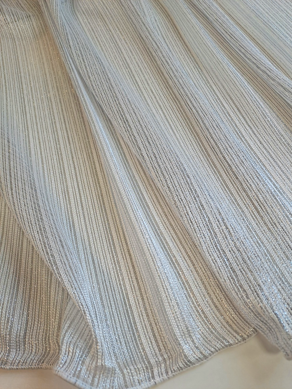 Țesătura este ușor rară și are inserții de lurex.
