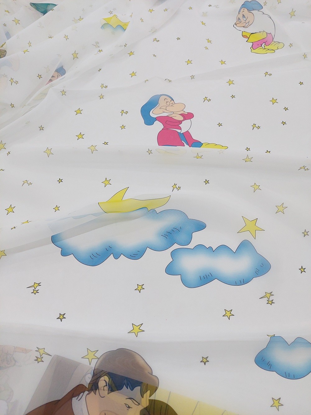 Este o perdea din voal alb cu Albă ca Zăpada și cei șapte pitici.