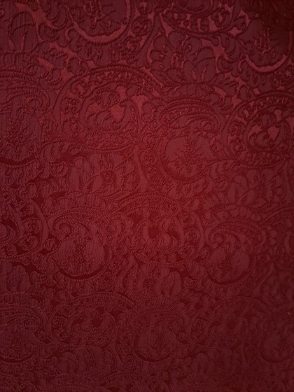 Este o stofă subțire roșie cu o compoziție de 80% lână și 20% poliester.